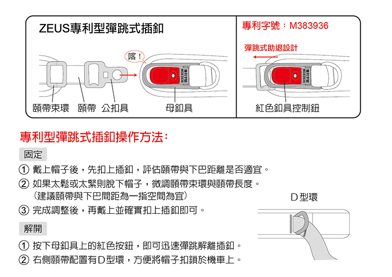 ●釦具採用ZEUS專利級彈跳式插釦,省力簡單又快速。